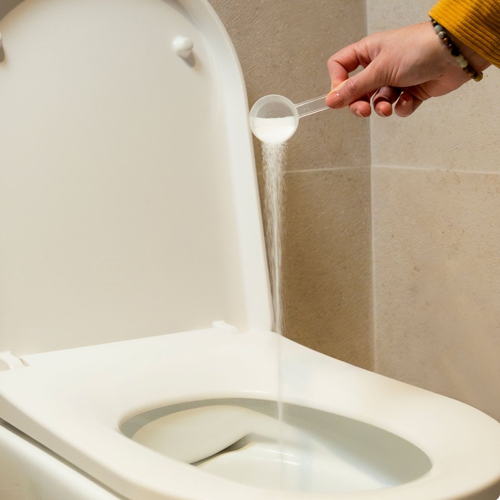 Návod na použitie: Každý týždeň nalejte odporúčanú dávku* do toalety a spláchnite.