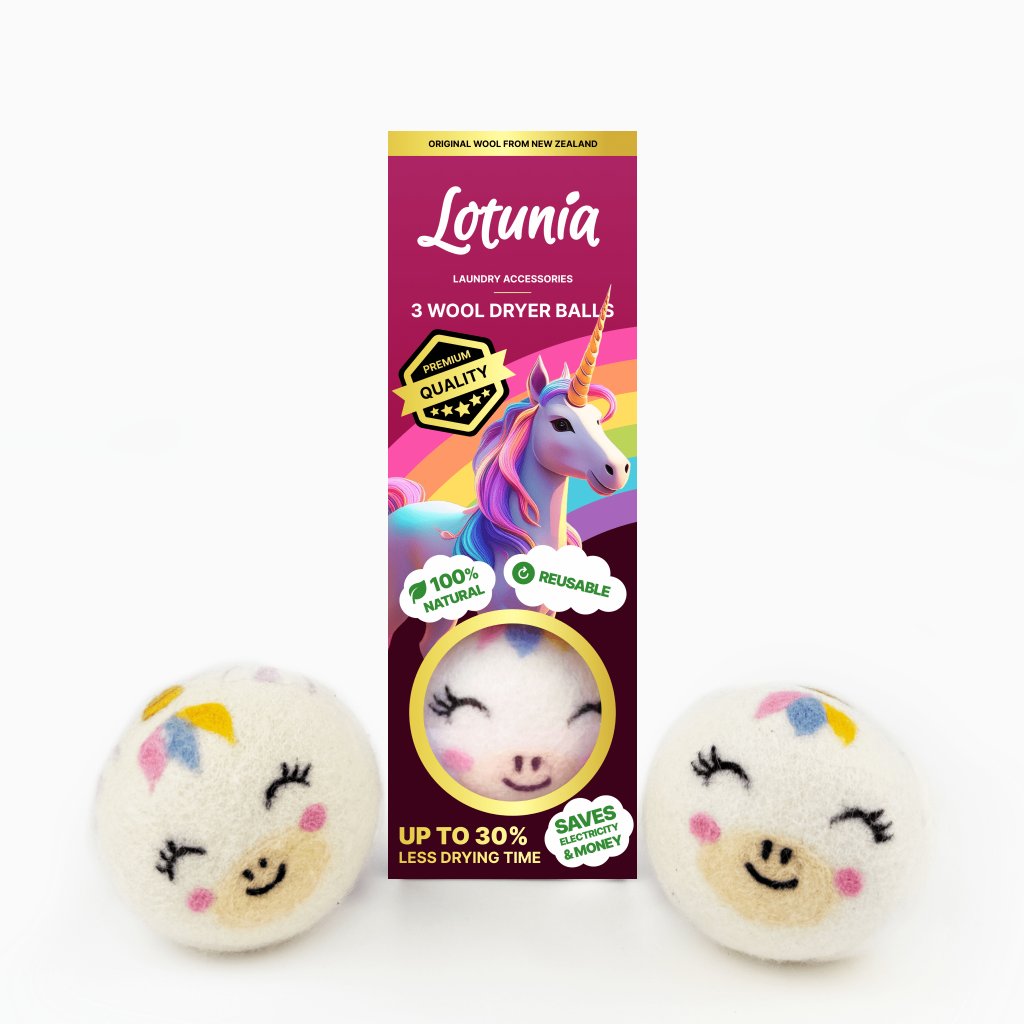 Prírodné gule do sušičky z pravej ovčej vlny – edícia Unicorn – 3 ks