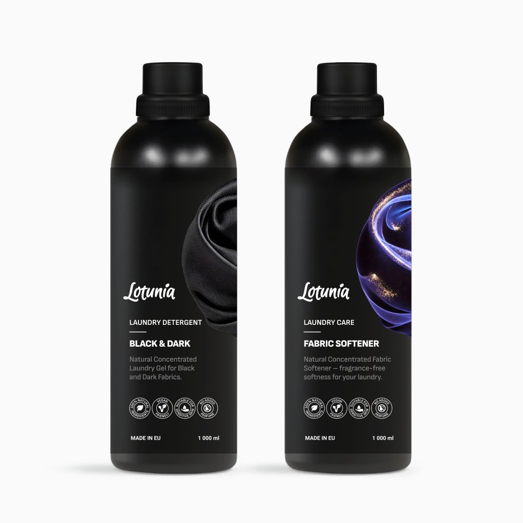 Set prírodného pracieho gélu na čiernu a tmavú bielizeň 1 l a prírodnej aviváže 1 l